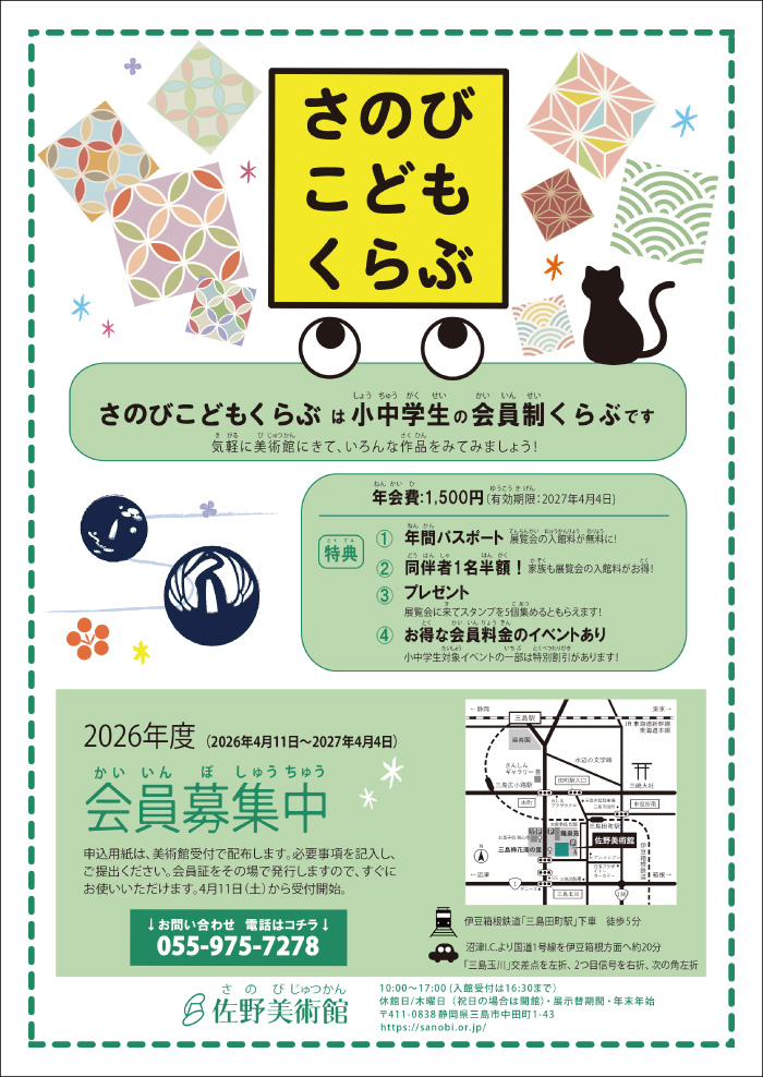 Sanobi Kids Club is a membership program for elementary and junior high school students, created to help young visitors enjoy art in a friendly and accessible way. “Sanobi” is the nickname of the Sano Art Museum, and as a member, you can experience even more of what Sanobi has to offer